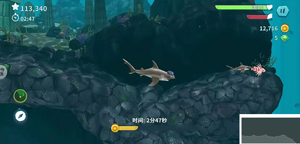 1.雙髻鯊母子聯(lián)手,幾乎每十秒經(jīng)歷一次淘金潮,然后就是碰到等級高的大魚一定要逃,不然傷害不了人家不說,自己很容易被別的等級高的鯊魚咬死。這點不值!