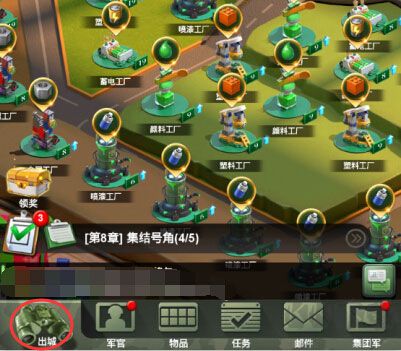 2.點(diǎn)擊頁面左下角位置出城,進(jìn)而進(jìn)入大世界。
