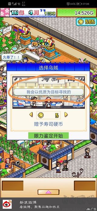 當(dāng)前,我們將壽司硬幣的數(shù)量逐步下調(diào),直至頭頂顯示的那句話發(fā)生改變即可。