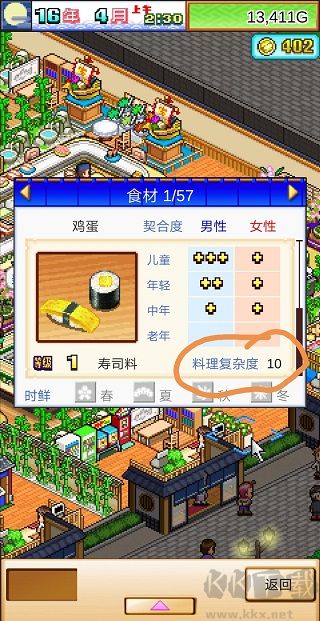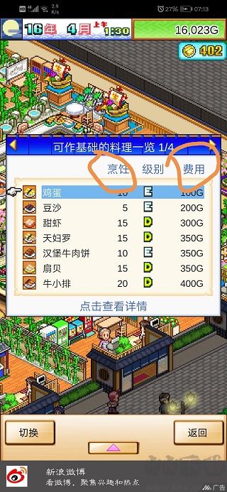 每種材料的 “材料復(fù)雜度”(即廚師所需烹飪能力)以及 “開發(fā)費(fèi)”,有兩種查看途徑: