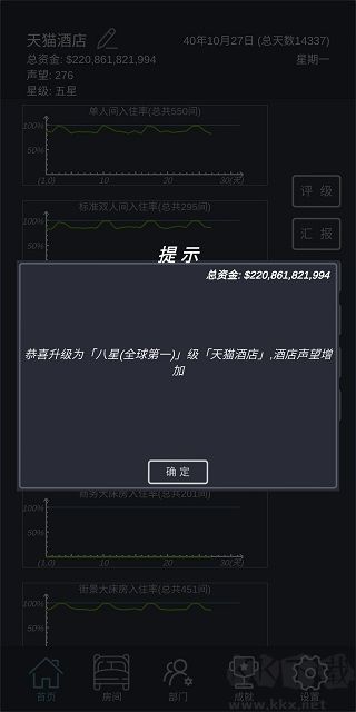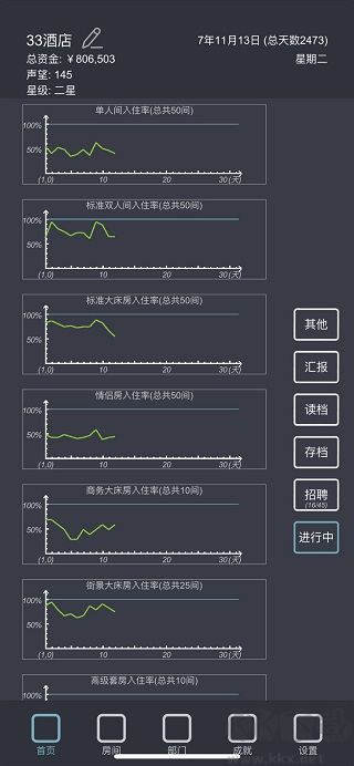 在游戲初期,不建議開啟套房、高級(jí)大床、行政套房以及總統(tǒng)套房。以本人為例,即便酒店達(dá)到三星級(jí)別,這些房型也難以住滿。另外,像單人房、標(biāo)準(zhǔn)間、情侶房、大床房、街景房等走量房型,務(wù)必注意不要將其升級(jí)過高。因?yàn)樯?jí)過度會(huì)使房?jī)r(jià)大幅提升,進(jìn)而對(duì)入住率產(chǎn)生不利影響。當(dāng)資金較為充裕時(shí),可以逐步對(duì)這些走量房型進(jìn)行擴(kuò)張。