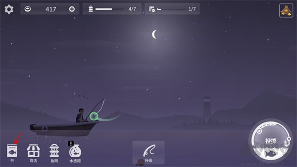4.抓魚:點擊書本標志,即可領取抓魚任務。完成任務后可領取金幣,金幣可用于購買各類專業(yè)漁具或對船只進行升級。