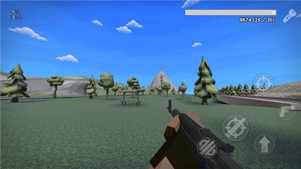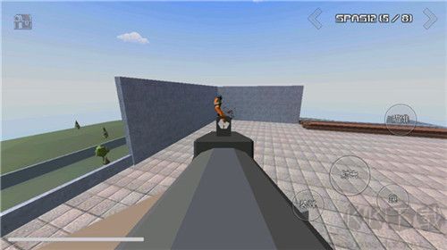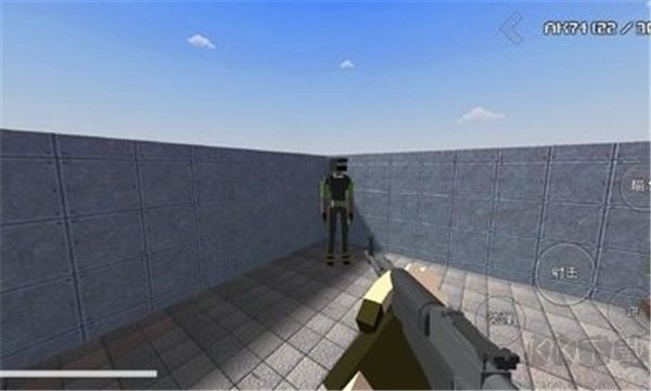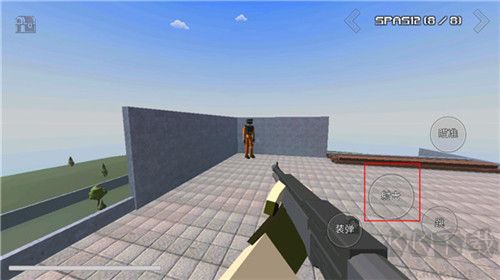 3、進(jìn)入游戲界面后,我們能夠看到:裝彈、射擊、瞄準(zhǔn)、跳躍等操作選項(xiàng),可借此移動(dòng)并觀察游戲環(huán)境;