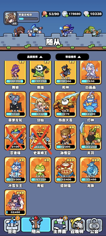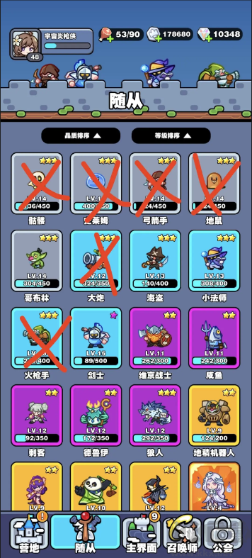 幸運(yùn)幣全用來(lái)抽紫色隨從。金幣少量用于召喚白藍(lán),強(qiáng)化白藍(lán)至3級(jí),其他全部用來(lái)強(qiáng)化紫色。