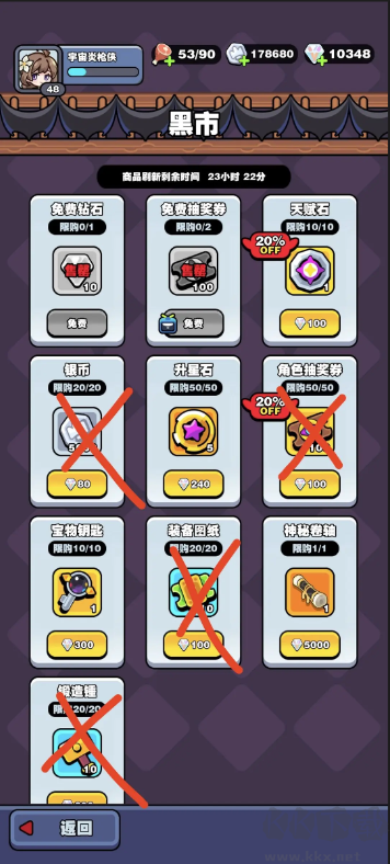 黑市可以買(mǎi)天賦石,前期可以買(mǎi)鑰匙開(kāi)紫色寶物過(guò)渡,招募券和錘子不推薦用磚石購(gòu)買(mǎi),天賦石很重要,能多攢就多攢,磚石要保留2k左右,預(yù)防神話(huà)招募磚石不夠。