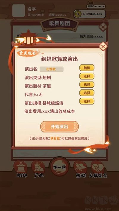 唐朝人生超好玩,這是款獨(dú)特的人生模擬經(jīng)營(yíng)游戲,能把你送回超輝煌的唐朝,在游戲里,不管你想做商業(yè)天才,還是當(dāng)武林高手、搞藝術(shù),都有大把機(jī)會(huì)和挑戰(zhàn),能打造自己超厲害的人生,這游戲不光能看到唐朝啥樣,還能讓你體驗(yàn)各種人生選擇,可以自由發(fā)揮想象,大膽創(chuàng)造自己的唐朝之旅,感興趣的小伙伴就快來(lái)kk網(wǎng)站下載體驗(yàn)一下吧。