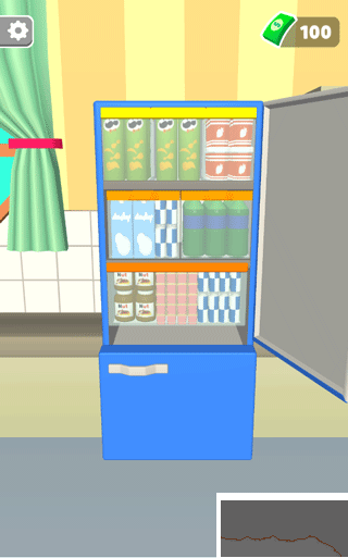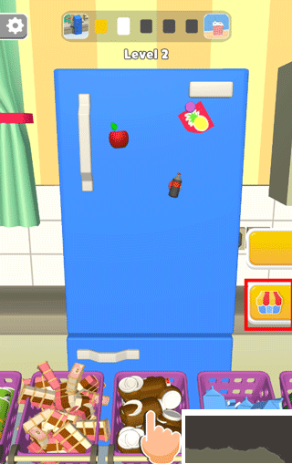 3、點(diǎn)擊冰箱柜,將物品有序擺放其中;