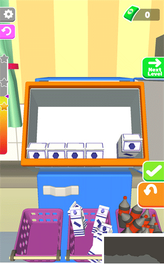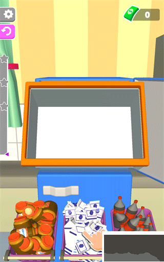 4、若物品排列未完成,可點(diǎn)擊返回箭頭,之后點(diǎn)擊取出物品,再點(diǎn)擊購(gòu)物籃以重新進(jìn)行排列 ;