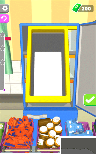 5、請(qǐng)將所有物品進(jìn)行整齊排列,之后點(diǎn)擊對(duì)勾,把冰箱柜歸位。