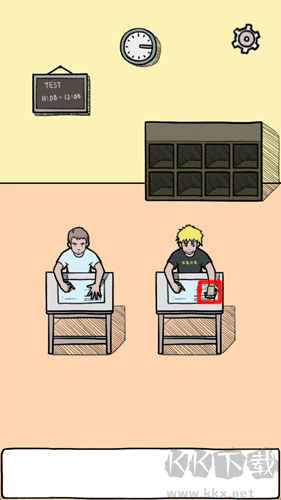 當(dāng)右側(cè)男孩張開手掌查看小抄之際,迅速點(diǎn)擊其手中的小抄便可完成關(guān)卡任務(wù) 。