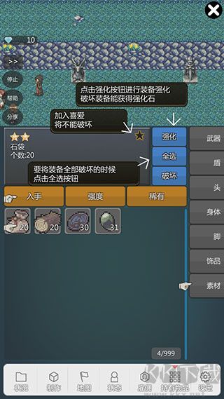 點擊 “強化” 按鈕以執(zhí)行裝備強化操作,拆解裝備可獲取強化石。