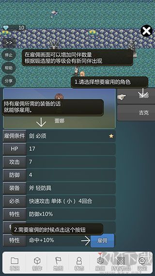 在雇傭界面可增加同伴數(shù)量,依據(jù)鍛造屋的等級,將會有新同伴出現(xiàn)。