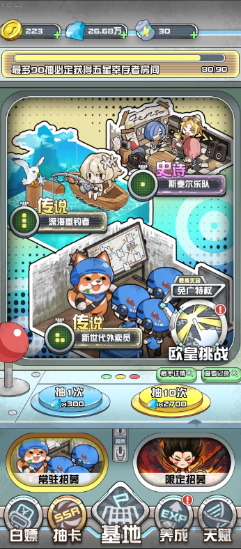 3.來到圖二,看到那個【歐皇挑戰(zhàn)】沒?點開,出來圖三這個界面。看一次廣告開啟!開完了點那個【抽10次】抽就完了!