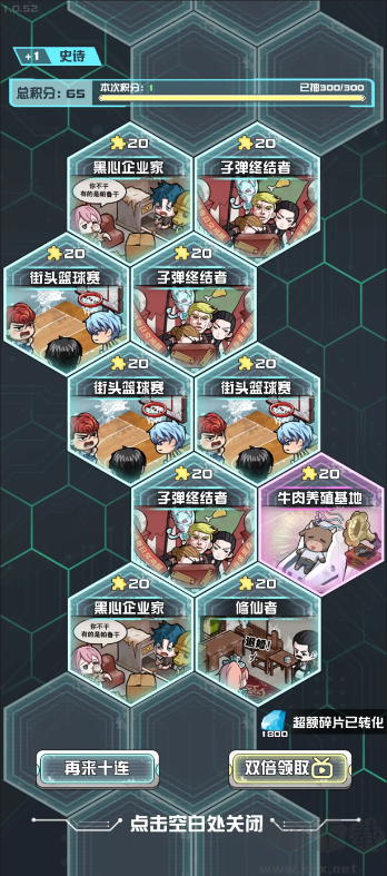 2.就用這種方法開始十連抽,抽出來后看看有沒有兩個及以上的6480鉆,如果有,就點【雙倍領(lǐng)取】;如果沒有就繼續(xù)【再來十連】??磸V告的方法就用1.的。搞差不多120w鉆石。20分鐘撐死了!
