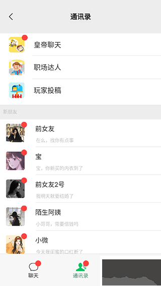 4、回到通訊錄,這里有很多好友,你可以隨便找一個人聊天