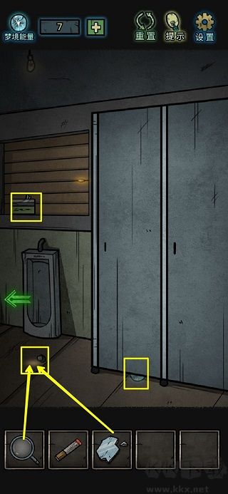 8、鏡子上拾取玻璃碎片,洗手臺里一個夢境能量;打開沒上鎖的柜子,獲得扳手和半個碎片;