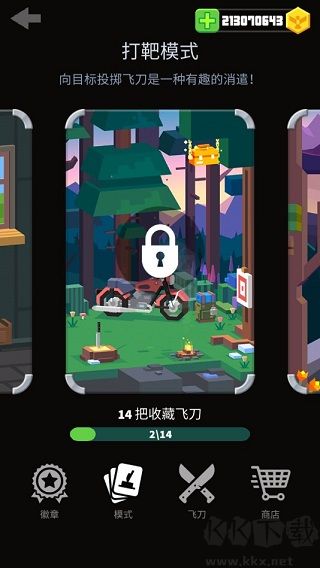 1、飛刀大師游戲中共有打靶模式、攀爬模式、過關(guān)模式和連擊模式4種玩法,4種模式各有玩法,也有著自己的規(guī)則和特點。不過作為游戲的起點、在進(jìn)行其他的玩法和嘗試其他道具之前最好在連擊模式中熟悉刀具的特點和重量后再行游戲。