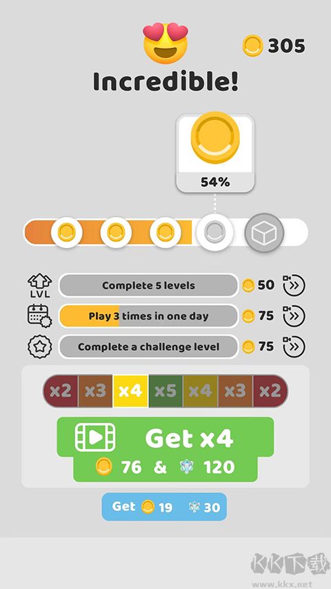 7、通關(guān)完成后,即可查看到拼圖、經(jīng)驗(yàn)以及金幣獎(jiǎng)勵(lì)。以上便是 Tap Away 的玩法。