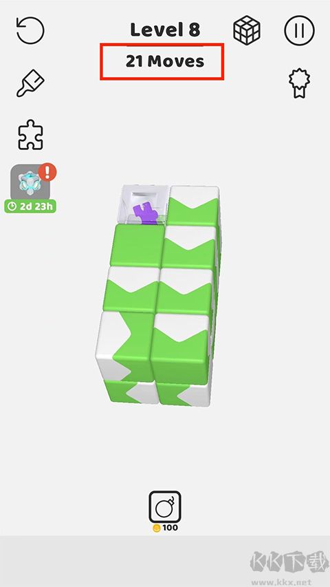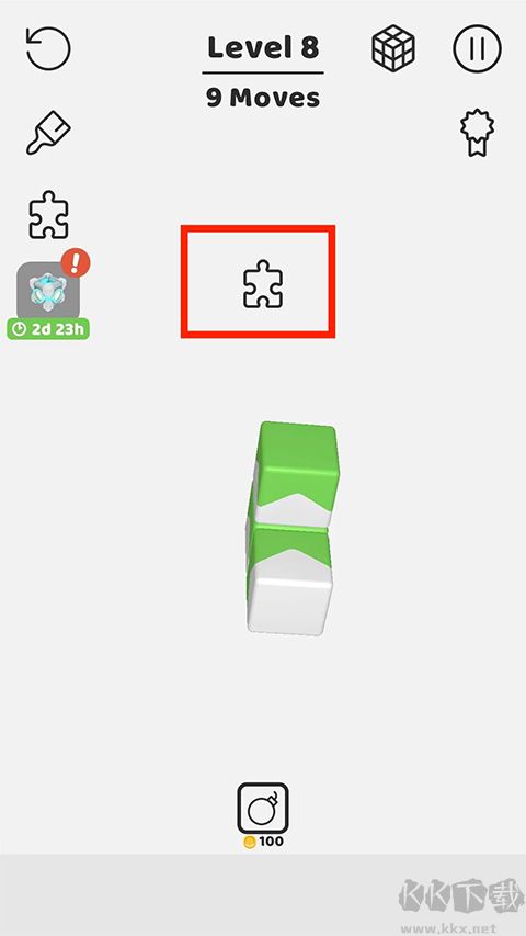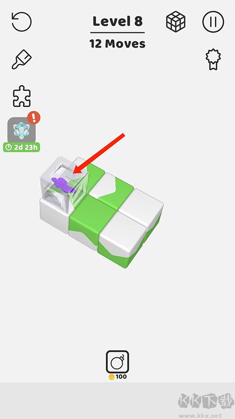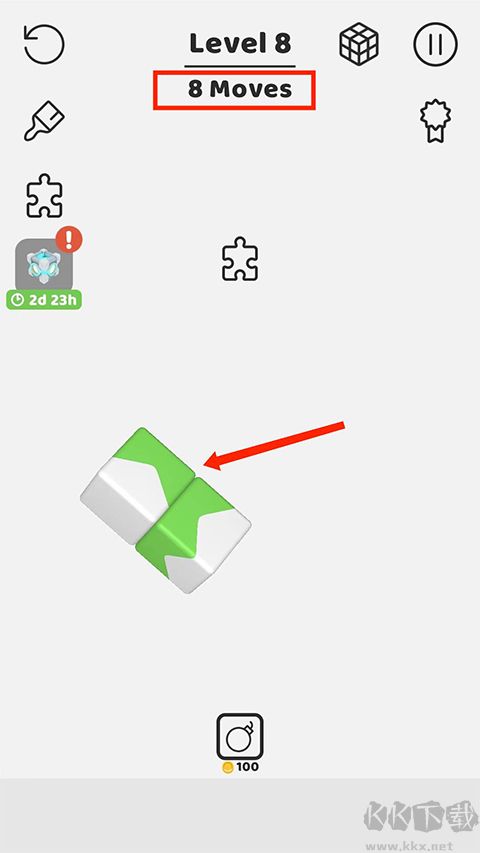 6、剩 8 次點(diǎn)擊次數(shù)和兩個(gè)小方塊,消除即可通關(guān),
