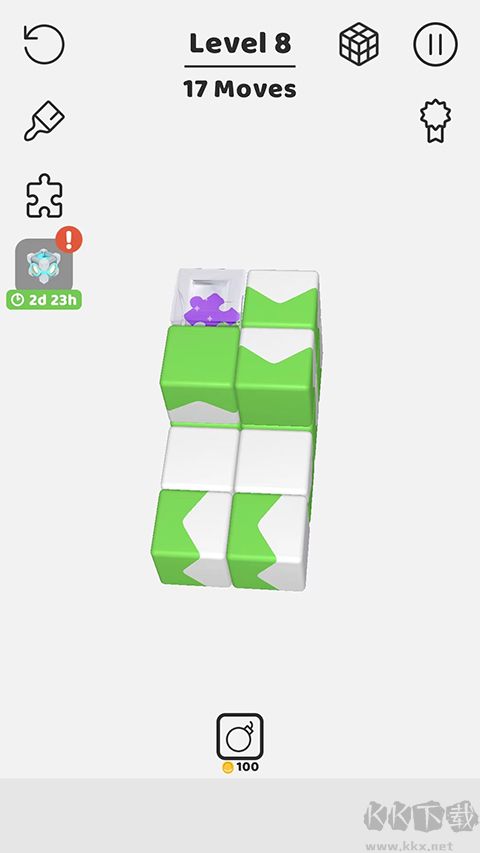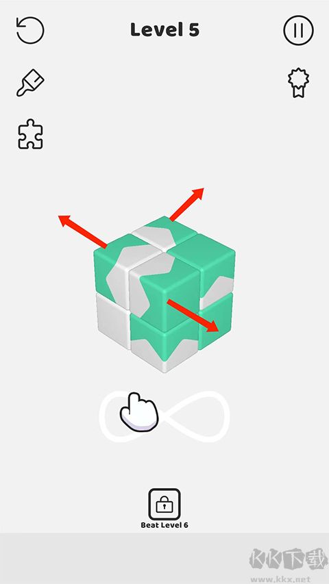 Tap Away可有意思了,是那種玩起來就上癮的3D積木消除益智玩意兒,在里頭,得把一塊塊由小方塊組成的積木給消除掉,完成一個(gè)個(gè)超好玩的關(guān)卡,感受3D消除的獨(dú)特樂趣,玩法特別簡單,就一個(gè)字 點(diǎn)。每個(gè)小方塊都有個(gè)面涂著顏色,要是這個(gè)顏色對應(yīng)的方向沒有別的小方塊擋著,一點(diǎn),小方塊就能拆分消除,可要是有顏色的面被其他小方塊堵住了,那就消不了,還浪費(fèi)一次點(diǎn)擊機(jī)會(huì),這游戲能360度轉(zhuǎn)視角,方便你找角度消除,一關(guān)關(guān)挑戰(zhàn)更難的關(guān)卡,感興趣的小伙伴就快來kk網(wǎng)站下載體驗(yàn)一下吧。