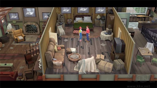 4、初始階段,房屋呈現(xiàn)較為雜亂的狀態(tài),因此需要各位進行裝修。裝修需按步驟推進,首先選擇床鋪;