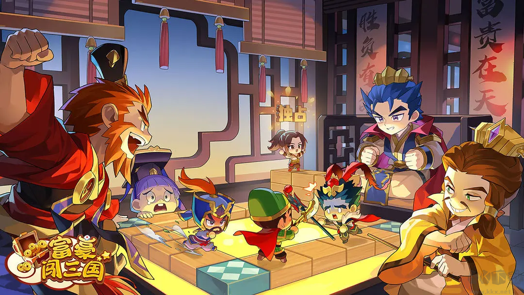 富豪闖三國游戲是一款內(nèi)容豐富玩法新穎且極具樂趣的休閑策略游戲,包含了大富翁的韻味又加上了三國英雄 血量 技能 武器等方面的設(shè)計,完美結(jié)合了兩大優(yōu)點,而且每次都是隨機,每次玩都有不一樣的感覺。即有豐富的PVE故事情節(jié),又有PVP的天梯模式,玩法種類多樣,裝備、建筑、技能等等應(yīng)有盡有。