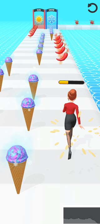 3、當(dāng)畫面中出現(xiàn)冰淇淋和辣椒時(shí),您需要避開冰淇淋,獲取辣椒。