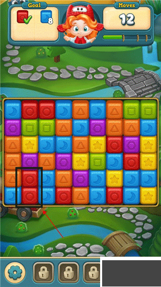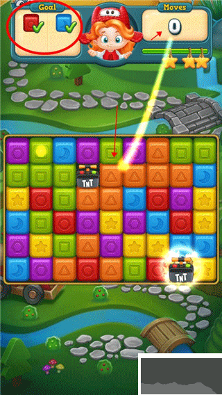 3、達到指定的目標后,剩下的步數就可以隨機當做獎勵消除一部分道具,增加得分