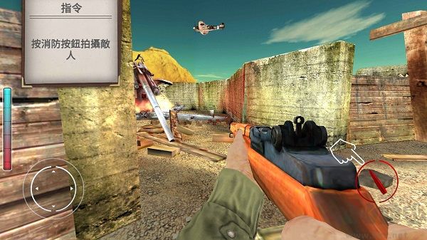 5、通過拖動左側(cè)虛擬搖桿,可控制士兵前后左右移動;在屏幕上拖動手指,能夠轉(zhuǎn)換視角。