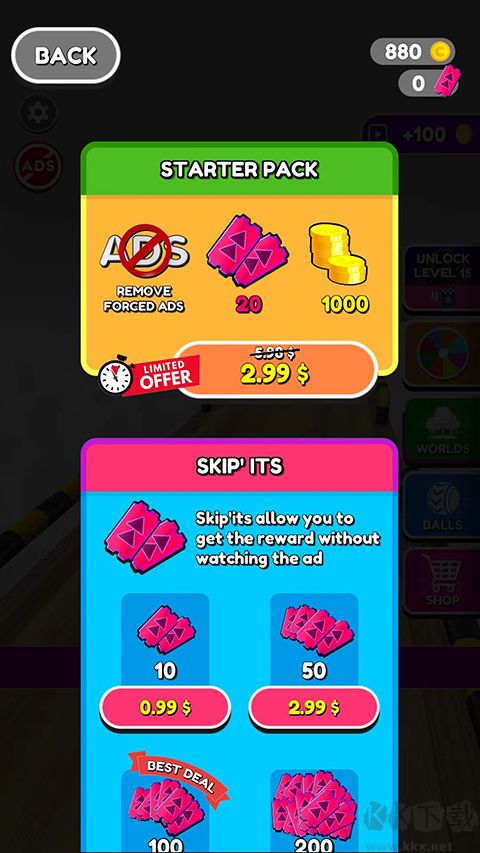 10、選擇【SHOP】選項,可進行金幣、卡牌等道具的購買操作。以上即為 Going Balls 球球酷跑游戲的攻略說明。