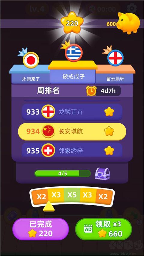 5、結(jié)束后,不僅可獲取星星與金幣,還能查看自身本周的排名情況。