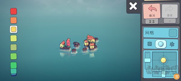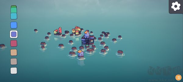 2、界面右上角的齒輪按鈕以打開(kāi)設(shè)置選項(xiàng),選擇 “新建” 功能,在此步驟后即可在水面上進(jìn)行房屋建造;