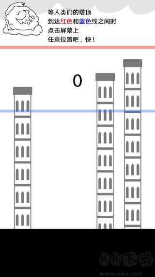 機制與玩法相對較為簡易,主要以休閑類點觸方式展開。玩家通過點擊持續(xù)上升的巴別塔來實現(xiàn)積分疊加。在此過程中,唯有當塔頂處于 “紅色線” 與 “藍色線” 之間并完成消除操作時,方可獲得積分。而且,塔頂所處位置越高時進行消除,所獲得的積分也就越高。例如,當塔頂頂著紅色線時,玩家可獲得 100 積分。隨著進程的推進,藍色線會在不經(jīng)意間逐漸上漲,同時巴別塔上升的速率也會參差不齊,這無疑極大地提升了難度與挑戰(zhàn)性 。