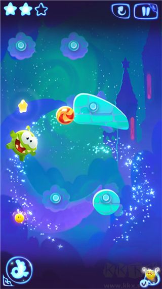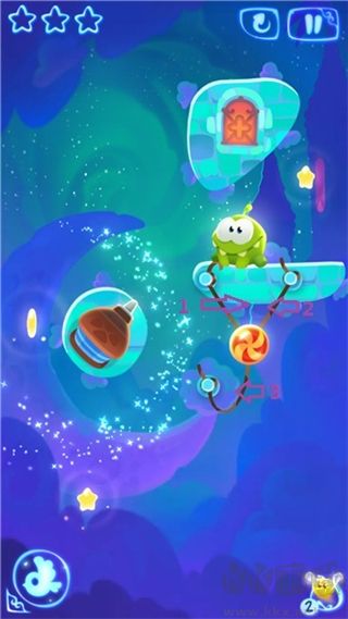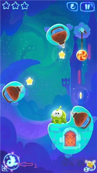 4、角色形態(tài)變換:冒險(xiǎn)過程中可將 Om Nom 變?yōu)?5 種魔法生物,豐富玩法策略。
