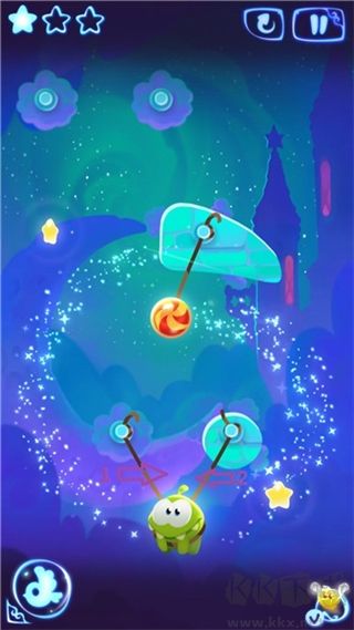 當(dāng)糖果獲取第一顆星星時(shí),迅速割斷繩子,糖果將順著星河抵達(dá)指定位置。