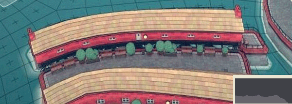 4、將成排的房屋地面鏤空,可以減少兩側(cè)的門,增加兩側(cè)的植物和長(zhǎng)椅,會(huì)有公園的感覺。