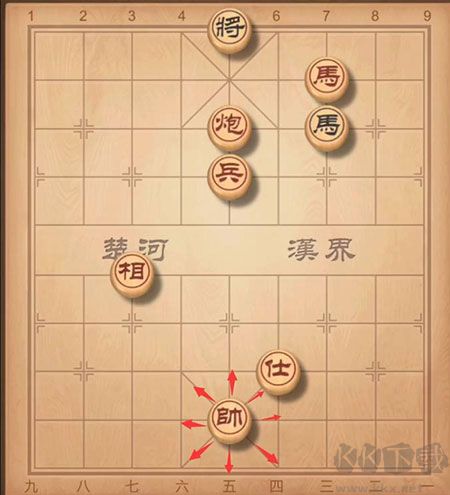 7、【士】的活動(dòng)范圍:士于 “宮殿” 內(nèi)走斜線,每次移動(dòng)一格,守護(hù)【將】。