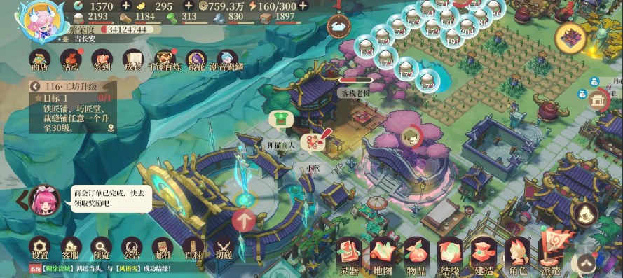 作為城主,玩家需要從零開始規(guī)劃城鎮(zhèn)布局:開墾農(nóng)田、建造作坊、研究科技樹……科技樹分為建筑、資源、生產(chǎn)、探索四大分支,解鎖內(nèi)容涵蓋裝飾建筑、農(nóng)作物到武器裝備。而十余種職業(yè)的居民(如神秘影衛(wèi)、煉丹道士)才是城鎮(zhèn)發(fā)展的核心——他們不僅外貌各異,更擁有專屬技能。通過培養(yǎng)居民等級、調(diào)整行為模式,甚至收集“靈器”提升戰(zhàn)斗力,玩家能真切感受到城鎮(zhèn)從荒蕪到繁華的蛻變。