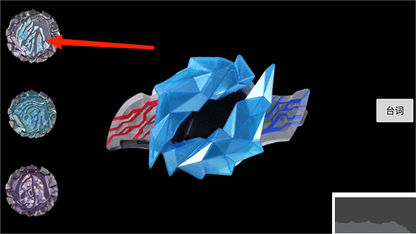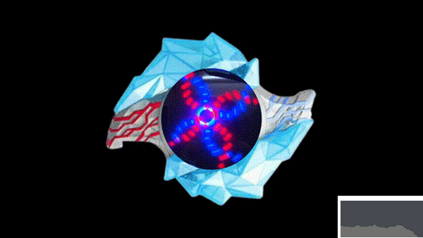 5、變身過程中,中間的水晶會展開露出顯示屏,出現(xiàn)紅色和藍(lán)色圓圈旋轉(zhuǎn),不同的晶石特效都不一樣的。