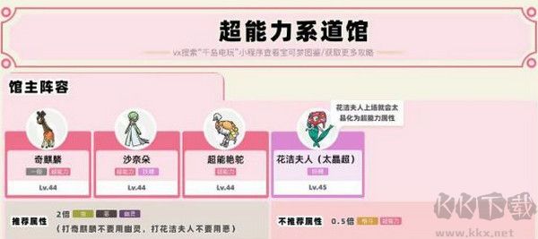 7、超能道館:45 級,焙固鎮(zhèn)莉普坐鎮(zhèn),沙奈朵棘手,草貓或黑魯加可應(yīng)對。