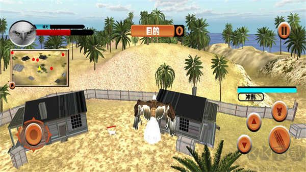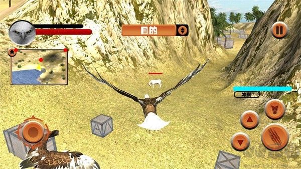 3、進入游戲,右側(cè)輪盤控制老鷹進行移動,右側(cè)按鈕則控制老鷹下降、上升、攻擊;