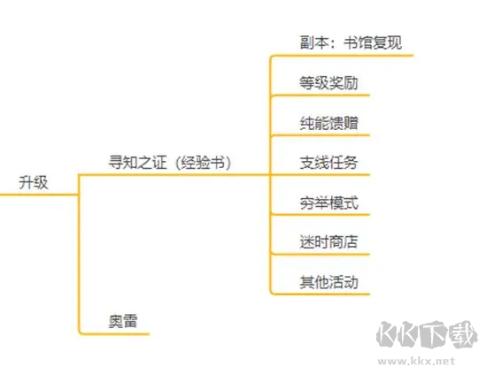 升級(jí)主要是通過藍(lán)色、紫色、金色三個(gè)等級(jí)的尋知之證(經(jīng)驗(yàn)書)來進(jìn)行,尋知之證可供獲取的途徑如下圖所示: