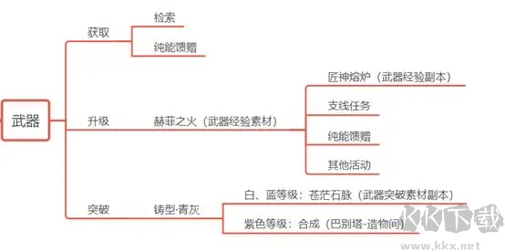 高等級(jí)武器可以通過檢索或純能饋贈(zèng)30級(jí)獲取,升級(jí)和突破素材的獲取途徑如下: