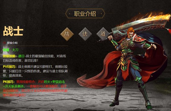 PK技巧:常用技能組合:開啟烈火+野蠻追擊+開天斬及刺殺,一套輸出可以重創(chuàng)脆皮。由于是近戰(zhàn)職業(yè),所以對于走位和釋放技能的時(shí)機(jī)都要有很好的掌控!