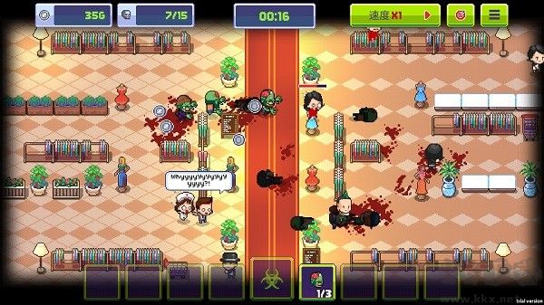 本作主要采用的是刷圖闖關的游戲機制,每一關玩家扮演的僵尸需要將場景中的人類全部感染才能完美獲勝。但是地圖的選擇是隨機的,你可以隨意選擇地圖上的一片區(qū)域進行感染,最重要的一點是你應該及時摧毀正在研發(fā)解藥的地區(qū)。