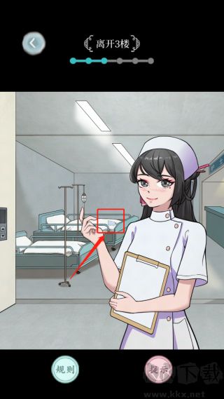 7、剛才在電梯中也是隨意按層,可以來到3樓,有個護士會和你交談,你又會看到一張紙條,還是點擊它,然后按劇情就可以完成任務