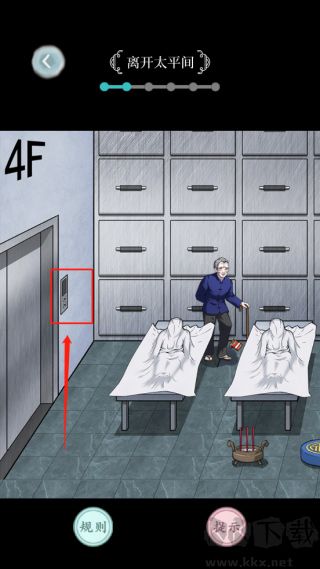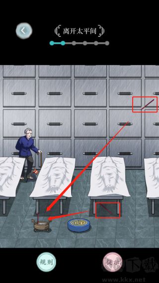 4、這時可能就會來到太平間,在這里可以點擊圖中綠色箭頭所指的紙條