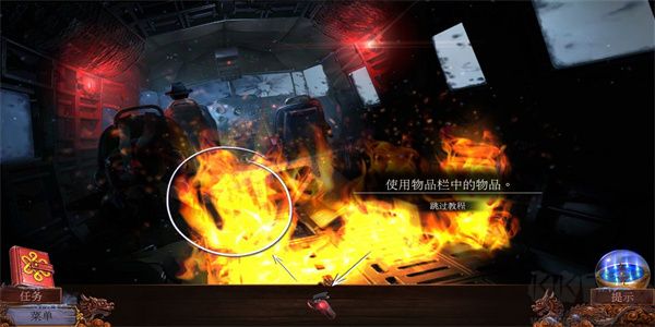 6、拾取使用道具:仔細(xì)觀察場景,點(diǎn)擊圖片中道具即可拾取。遇火時(shí),從物品欄選滅火器,點(diǎn)擊操作便能滅火,善用道具是關(guān)鍵 。
