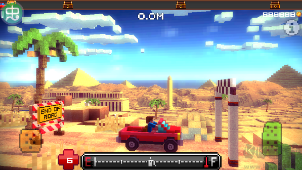 起初玩家只能選擇原配的紅色小皮卡展開游戲,玩法上有點(diǎn)《Stick Stunt Biker》的味道。點(diǎn)擊左右下角的踏板分別可以讓車子后退或前進(jìn),此外畫面下方顯示的是油量,上方則代表車子駛出的距離。有趣的是該作還加入了車損設(shè)定,只要行駛的過程中受到激烈碰撞都會(huì)導(dǎo)致生命值的損失,在數(shù)值不斷降低的過程中,小車還會(huì)冒出黑煙表示已經(jīng)達(dá)到某種程度的損壞,迫使玩家不得不丟掉“求快”的駕駛習(xí)慣,小心翼翼地克服各種顛簸地形。