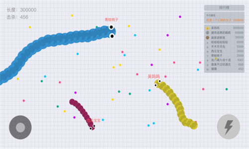 3.長按加速鍵,用巧妙的走位讓蛇身被別人撞上,就可以吃掉尸體迅速變長